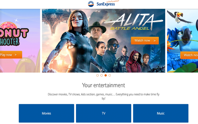 SunExpress uçaklarının içinde Wireless Inflight Entertainment sistemi bulunmaktadır. Bu sistem ile yolcular, kendi telefon ve tabletleri ile uçakta bulunan eğlence sistemine bağlanarak istedikleri filmi izlemekte, müzik dinlemektedirler.